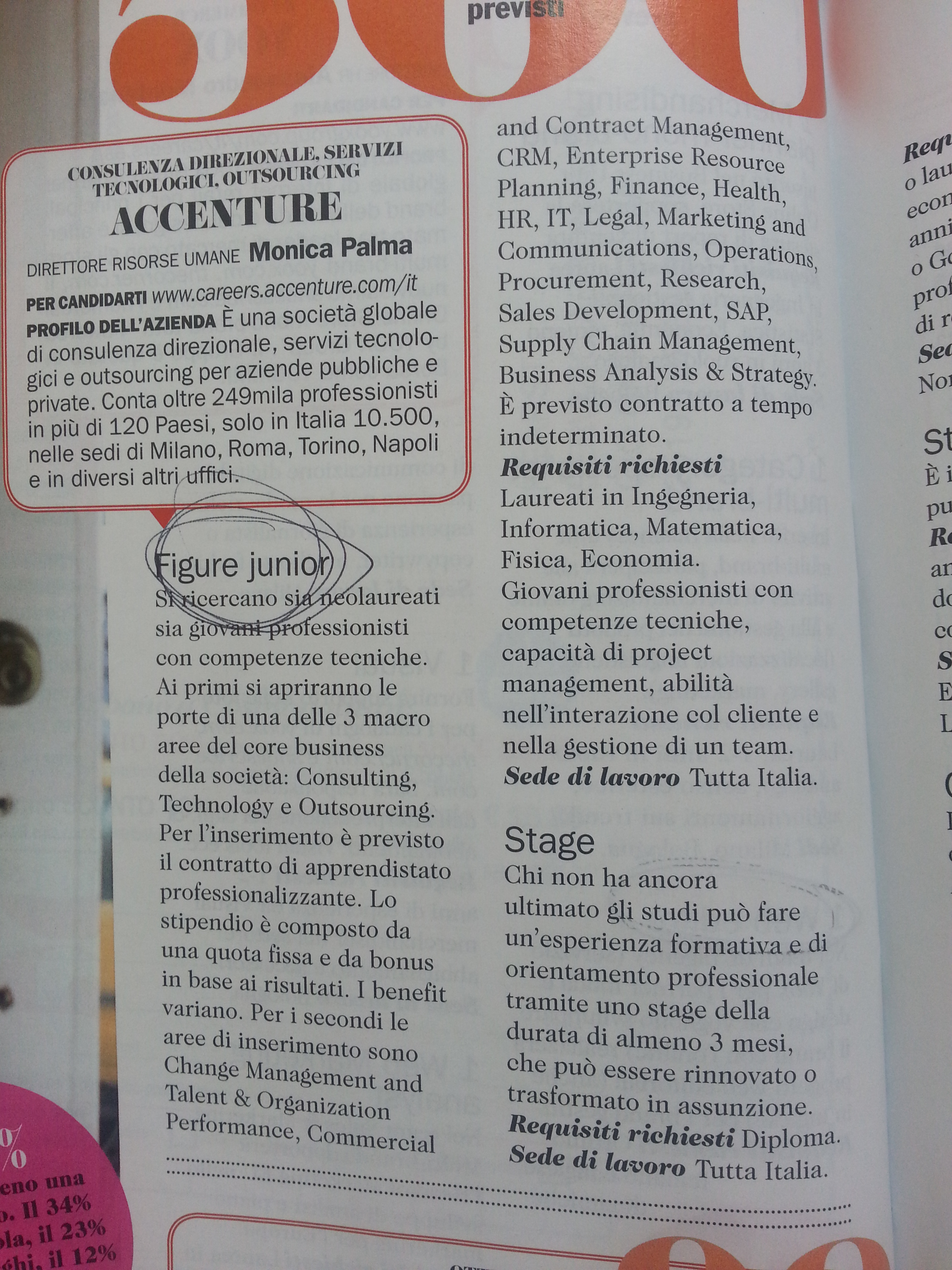 accenture la conosco molto bene e i laureati in economia sono molto usa&getta anche perchè vengono sostituiti da i matematici.fisici e informatici..essendo una software house e it solution…zalando lo lessi qualche mese fa…