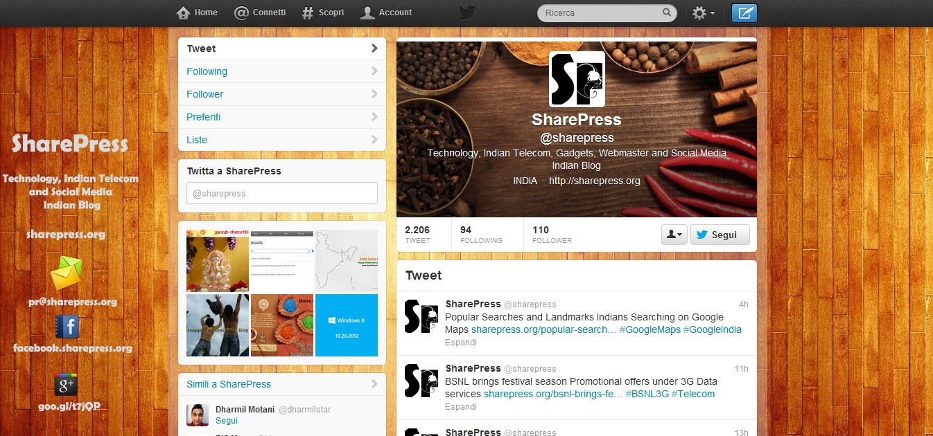 SharePress il blog made in India usa la testata per farne una vera e propria dichiarazione di identità. L’uso dell’immagine delle spezie, così legate alla cultura indiana, richiama la diversità dei gusti e sottolinea la molteplicità dei colori. E’ una foto familiare agli utenti, uno scatto di qualità che sembra dire: nonostante parliamo di tech&media siamo vicini a voi, genuini e “reali” come la nostra cucina.
